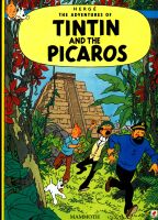 The first thing everyone noticed about Tintin And The Picaros was that after close on fifty years of sterling service, Tintin's famous plus fours had gone. They were replaced by a pair of anodyne brown trousers, which, on the front cover of the book, had flares. Tintin himself had taken to riding a motorbike with a CND symbol on his helmut. Nester the faithful butler listened at doors and was caught drinking his master's whisky. Captain Haddock revealed with embarrassment that his christian name was Archibald, and described Tintin's own name as "grotesque"… Hergé was subverting his characters, apparently bored with them. Hergé had gone through a lot of torment to produce Tintin And The Picaros (he made two visits to a clinic in the USA in an attempt to cure the eczema that accompanied his every attempt to draw Tintin) but the effort was thrown away in a wave of cynicism that pervades the book. There are some great scenes in Tintin And The Picaros, and it is painstakingly researched and historically accurate, yet it lacks the freshness and appeal of the previous Tintin adventures. It wasn't a good note to end on.