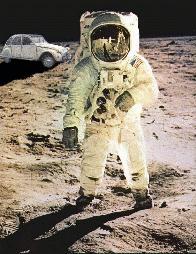 The lunar roving 2CV (LR2CV) transported two astronauts on exploration traverses on the Moon during the Apollo 15, 16, and 17 missions. The LR2CV carried tools, scientific equipment, communications gear, and lunar samples. Extra storage space could be provided by removing the back seat.