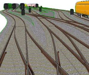 The two different train lengths, and the fact that six carriage trains can't be accepted in Blocks 1, 2, 7 & 15, brings more complexity into the train movements and ensures that the traffic pattern does not become too cyclic. This uneven layout of the trackwork forms part of Commuter's nervous system, and the attempt to create consciousness, while the rails themselves act as busbars, carrying power and digital signals.